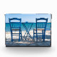 Blue is the colour of Greece. This image shows a typical set up at a greek beach taverna.