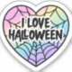 I Love Halloween Spider Web Heart Sticker in pastel colours