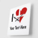 I Love (Heart Danish Flag) Personalized Text Square Wall Clock