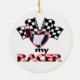 Ornaments for girls who love their racecar driver. These ornaments can be used to decorate your Christmas tree or use as a door hanger.