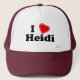 I love Heidi! Is your name Heidi? Do you have a husband, boyfriend, male family member or male friend who you know loves you? Or do you have a wife, girlfriend, female family member or female friend named Heidi whom you love deeply? If so, this "I Love" hat is exactly the gift that you're looking for! The design features the letter "I" in black lettering with a red heart on the top and "Heidi" in black lettering on the bottom.