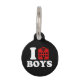 I looked through a lot of pet stores and web sites then I saw Zazzle and a tag with guitars in the background so we added his name and photo o nether front and our phone numbers on the back. It was beautiful and unique just perfect