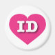 This magnet features a vibrant hot pink heart containing the bold, white, upper case letters ID, the official abbreviation for Idaho, the gem state.
