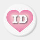 This magnet features a pink heart with a white-washed center containing the bold, white, upper case letters ID, the official abbreviation for Idaho, the gem state.