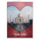 Image of the Taj Mahal is surrounded by a heart-shaped frame and has the words "I love India" underneath.