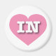 This magnet features a vibrant pink heart containing the bold, white, upper case letters IN, the official abbreviation for Indiana, the hoosier state.
