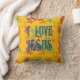 I Love Jesus Christian Faith Throw Pillow. Hand drawn flowers on a bright yellow background. Enjoy!