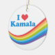 A beautiful Kamala Harris rainbow Christmas ornament gift for a democrat feminist who loves strong women and female role models in politics. I Love Kamala.