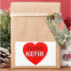 I love kefir. Kefir is a natural probiotic drink made from milk. Red heart image with text.