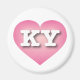 This magnet features a calm, cool, and collected pink heart with a white-washed center containing the bold, white, upper case letters KY, the official abbreviation for Kentucky, the bluegrass state.