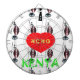 The image showcases a repeating pattern of stylised bronze Maasai figures holding Maasai shields and spears, arranged in a grid-like format. At the centre, a bold red heart with "XOXO" written on it adds a whimsical touch. Below the heart, the word "KENYA" is prominently displayed in green, creating a balanced and focused composition that highlights both the cultural elements and the message of affection.