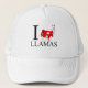 Instead of the ordinary design of "I Heart Llamas”, the 'Heart' is changed to a striking illustration of a red llama. A bit of trivia: Llamas don't bite. They spit when they're agitated, but that's mostly at each other.