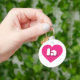This keychain features a vibrant hot pink heart containing the bold, white, rounded lower case letters la, a playful abbreviation for Louisiana, the pelican state, or Los Angeles, the city of angels.