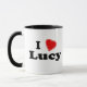 I love Lucy! Is your name Lucy? Do you have a husband, boyfriend, male family member or male friend who you know loves you? Or do you have a wife, girlfriend, female family member or female friend named Lucy whom you love deeply? If so, this "I Love" mug is exactly the gift that you're looking for! The design features the letter "I" in black lettering with a red heart on the top and "Lucy" in black lettering on the bottom.