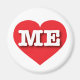 This magnet features a vibrant red heart containing the bold, white, upper case letters ME, the official abbreviation for Maine, the pine tree state.
