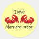 I love maryland crabs! classic round sticker