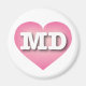This magnet features a calm, cool, and collected pink heart with a white-washed center containing the bold, white, upper case letters MD, the official abbreviation of Maryland, the old line state.