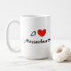 Custom mug featuring trendy minimalist text design with a red heart and "I Love Massachusetts" in brush script typography! Make it a nice gift for yourself or anyone who loves Massachusetts. Available in several different styles and colours. Choose 11oz or 15oz coffee mug.