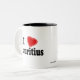 I love Mauritius! Are you from Mauritius? Do you have a friend or family member who loves Mauritius? If so, this "I Love II" mug that shows love for Mauritius is exactly the gift that you're looking for! The design features the letter "I" in black lettering with a red heart on the top and "Mauritius" in black lettering on the bottom.