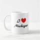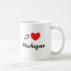 Custom mug featuring trendy minimalist text design with a red heart and "I Love Michigan" in brush script typography! Make it a nice gift for yourself or anyone who loves Michigan. Available in several different styles and colours. Choose 11oz or 15oz coffee mug.