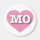 This magnet features a vibrant pink heart containing the bold, white, upper case letters MO, the official abbreviation of Missouri, the Show Me state.