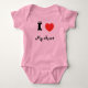 Celebrate the cherished relationship between aunt and niece with this heartwarming pink baby bodysuit. Adorned with the phrase "I ❤️ My Aunt" in contrasting bold black lettering and a deep red heart, this outfit expresses love and affection in the cutest way possible. Crafted from soft, breathable fabric, this bodysuit ensures comfort for all-day wear, whether it's for a family gathering or just a casual day at home. Its durable design includes convenient snap closures for easy dressing and diaper changes. A thoughtful gift for baby showers or birthdays, this bodysuit is a sweet testament to the aunt-niece bond that will be treasured as a keepsake long after the baby has grown.