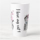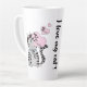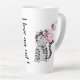 A cute latte mug for all cat lovers out there . It has the cartoon illustration of a grey American short hair cat wearing a black beret and sending you hugs and kisses . The quote says "I love my cat !" , but feel free to change it , replace it with a name or erase it altogether . To accomplish that simply use the template .