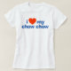 Chow chow dog owner T-shirt. Design has a red heart, plus blue and white lettering. Ideal gift for anyone who has a chow chow as a pet. Show your love for your chow chow with this strong message on a white t-shirt.