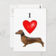 I Love My Dachshund Red Heart Postcard