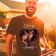 I love my family with a personalised photo. The design features a heart frame with a personalised photo and custom script text saying I love my family, son, wife or daughter.