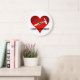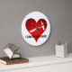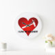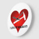 This numberless wall clock features a red heart with a white rock hammer cut out, and the text "I love my geologist!" The words can be easily personalised to suit your needs!