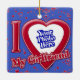 I Love My Girlfriend Photo Red Hearts Deep Royal B Ceramic Ornament