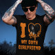 Another gothic dripping design by JessicaAmber - ask about custom orders! Show your love with this slogan t-shirt that says 'I Love My Goth Girlfriend' - you can edit the text to suit any loved one. Also has a bold silhouette of an oozing heart with a photograph inside. You can replace it with a photo of your favourite person. The text is orange for a fun Halloween vibe.