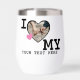 I love my personalised photo and text stemless wine tumbler from Ricaso - add your own photograph to this heart shape template, change the text to suit your requirements - what or who do you love?