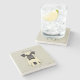 The coasters are gorgeous, a quality feel and heavy weight. They look like a precious archeological find. A rustic stone juxtaposed with a modern floral black and white print. I like the way the print goes slightly imperfect on the cut stone edges giving them a kind-of natural beauty.