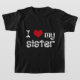 Product says "I love my sister" in a white font, great on black shirts! Font gives a grunge feel to it.