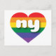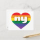 This postcard features a rainbow pride heart and the bold, white, lower case letters ny, a playful abbreviation for New York, the empire state. The reverse side of the postcard is blank, awaiting your handwritten sentiments or customised text. Show your true colours, support marriage equality, and celebrate gay pride.