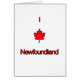 A variation on the I Heart theme. The image uses a Canadian maple leaf in place of the normal heart symbol. This design says "I (Canadian maple leaf) Newfoundland. The lettering and leaf symbol are red with a black border or stroke. This makes a great gift for anyone who is a proud Canadian and Newfoundlander.
