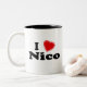 I love Nico! Is your name Nico? Do you have a wife, girlfriend, female family member or female friend who you know loves you? Or do you have a husband, boyfriend, male family member or male friend named Nico whom you love deeply? If so, this "I Love" mug is exactly the gift that you're looking for! The design features the letter "I" in black lettering with a red heart on the top and "Nico" in black lettering on the bottom.
