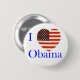 I love Obama Button with bold blue lettering. Beautiful red, white and blue USA flag heart decorates this Barack Obama campaign Button.