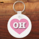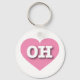 This keychain features a calm, cool pink heart containing the bold, white, upper case letters OH, the official abbreviation for Ohio, the buckeye state.