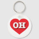 This keychain features a vibrant red heart containing the bold, white, upper case letters OH, the official abbreviation for Ohio, the buckeye state.