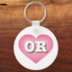 This keychain features a pink heart with a white-washed center containing the bold, white, upper case letters OR, the official abbreviation for Oregon, the beaver state.