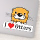 Cute otter illustration. Large sticker which says I Love Otters. Otter's Head illustration motif. For otter lovers. Wildlife and conservation.