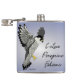 The flask itself is fine. It’s a cheap flask, obviously bought in bulk, however am prepared to overlook that. Given that it is a personalized item, I would have liked to have seen gift boxing instead of the generic packaging. Terrible printing, and/or quality. It’s a cheap, tacky vinyl. It is not cut straight and is also applied in a way that it is overhanging the bottom, causing the glue to catch on items and it will eventually roll and tear, damaging the wrap.