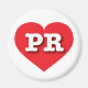 This magnet features a vibrant red heart containing the bold, white, upper case letters PR, the official abbreviation for Puerto Rico, the isle of enchantment.