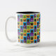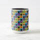 I love Pugs Fawn & Black Pug Colour Square Two Tone Mug - green, blue, orange & purple squares alternate with fawn and black pugs & I heart pugs