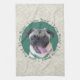 Adorable kitchen towel with a picture of a pug with her long tongue hanging out with the caption "I Love Pugs!"