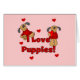 Two cute brown dogs dressed in red sweaters, red hearts, and red text that reads "I Love Puppies!" is featured on puppy dog t-shirts, mugs, tote bags, stickers, keychains, and more.