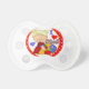Darling pacifier. A very good gift the the new baby of a teacher, other school personnel, or a strong education supporter. Printing was a little bit fainter than I thought it might be but was very legible. The illustration was very cute.
